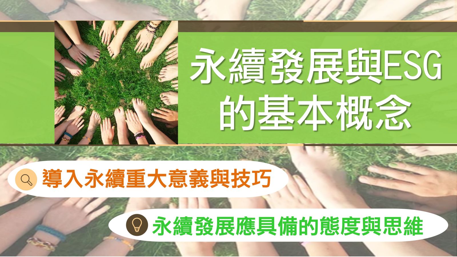 讓學員能理解永續發展與ESG的基本概念,並具備面對與處理永續發展議題的正面思維。
