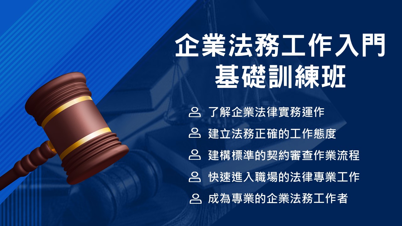 本課程旨在協助初階法務人員或兼任法務職務的企業同仁,建立正確的法律風險觀念與契約審查能力。透過實務導向的說明與案例解析,學員將能了解法務在企業內的定位與角色,掌握契約審閱重點與合約風險控管原則,進而提升企業法遵與經營安全。