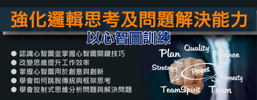 「心智圖」是由英國的東尼. 博贊(Tony Buzan)於1970年代研究心理學、神經語言學、記憶的技巧與大腦,提出的一種思考方式,這種表現方式更加接近人們思考時的空間性想像,幫助您擺脫線性思考,讓您創意無限。超過2000家以上的跨國企業學習心智圖應用於工作上,應用在創意思考、問題分析、知識管理、專案管理…等,學習心智圖讓您更有創意、效率與思考力。