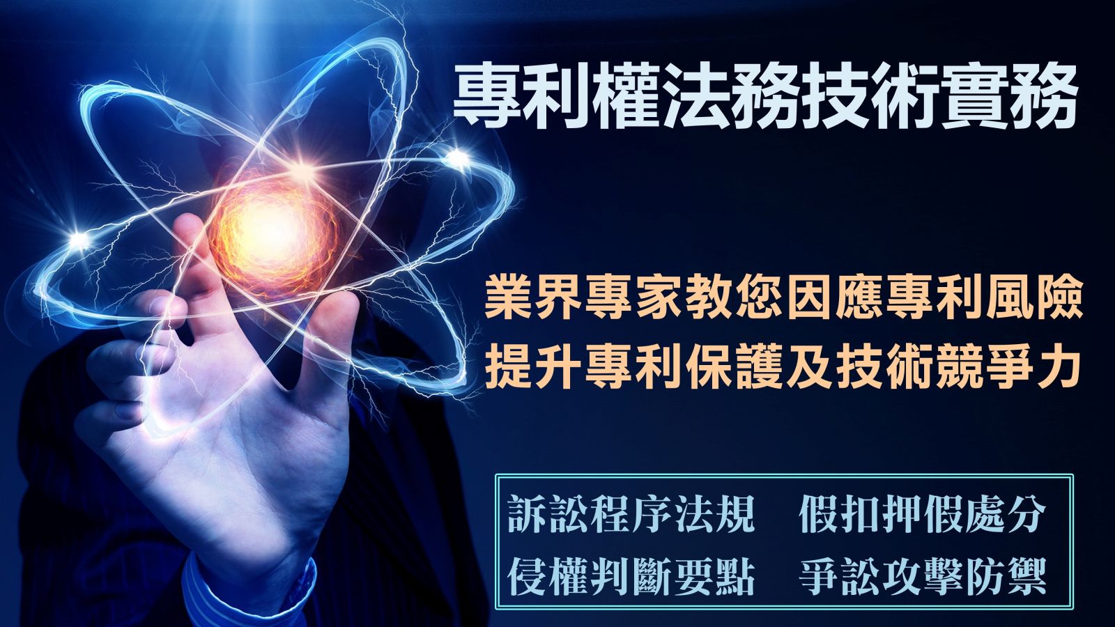 近年來,創新經濟儼然為未來世紀的經濟模式,智財權更是成為企業經營的關鍵命脈,企業不斷積極活用智慧財產來提昇創新及獲利的成長規模,因此本院特辦理「專利權法務技術實務講座班」相關課程,協助您及您的企業建構堅韌的智財防護網。