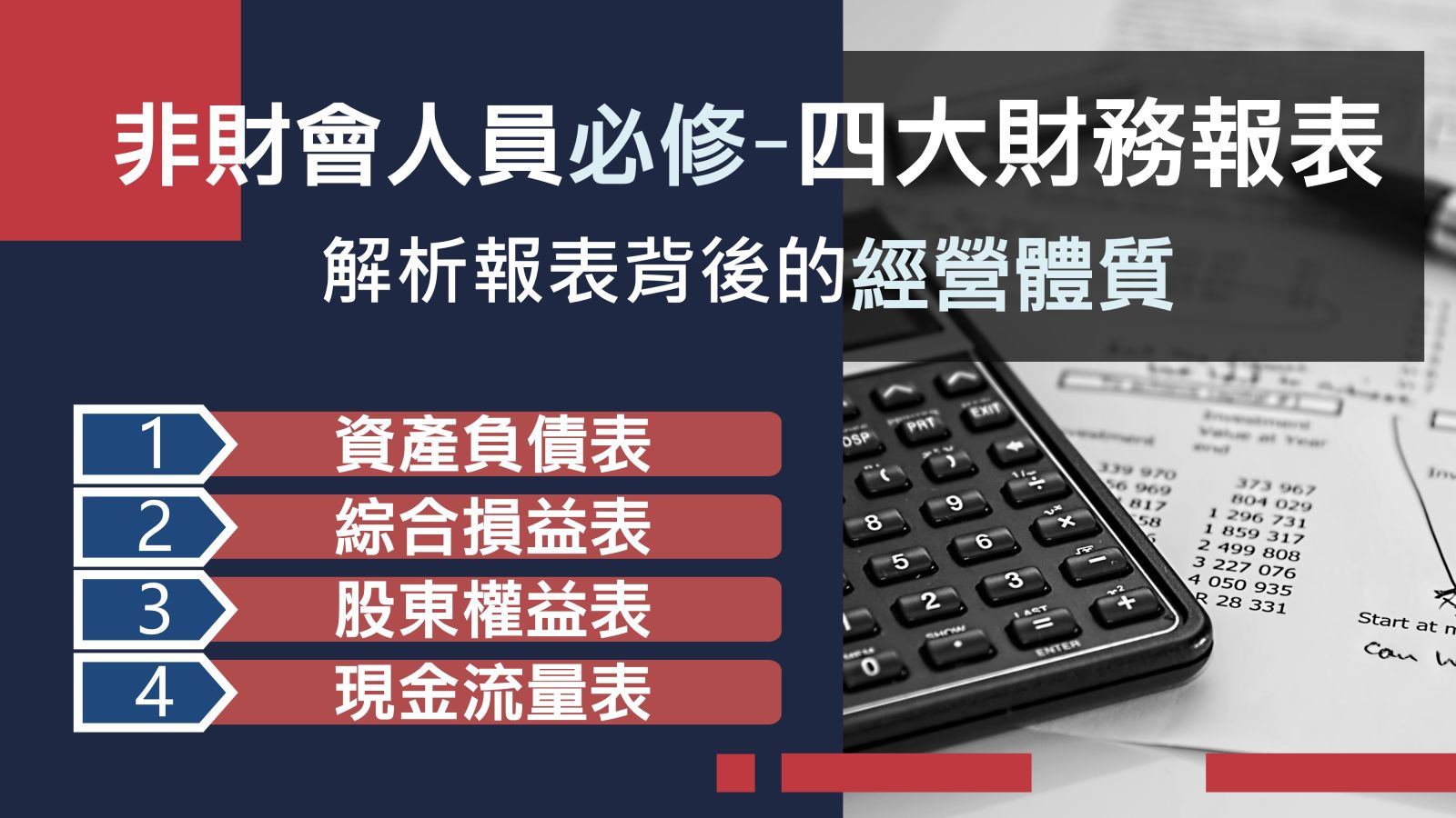 課程針對沒有財會背景的人員設計,邀請有多年教授基礎會計經驗之講師,搭配實務經歷,知悉學員問題點,讓看懂四大財務報表變不難,只要跟著講師步驟,即使是「非財會人員」,也馬上可以上手看懂四大財務報表。