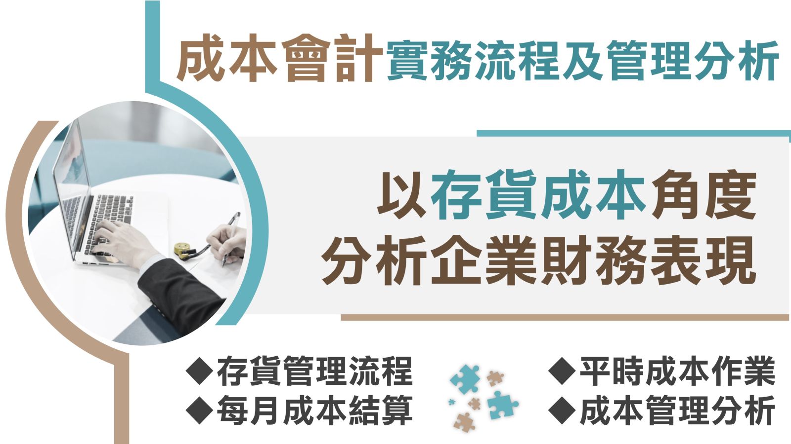 存貨銷售為企業業務經營的核心,存貨成本直接影響公司獲利多少。本課程以公司實際運作出發,說明採購、庫存、生產、銷售、盤點等存貨周轉流程,介紹每個流程應當注意的內部風險控制和稽核機制,說明財務部成本會計平時作業和每月結算的具體事項和管理重點,進而以存貨成本角度分析企業財務表現,向公司各管理階層提出改善改進的建議。