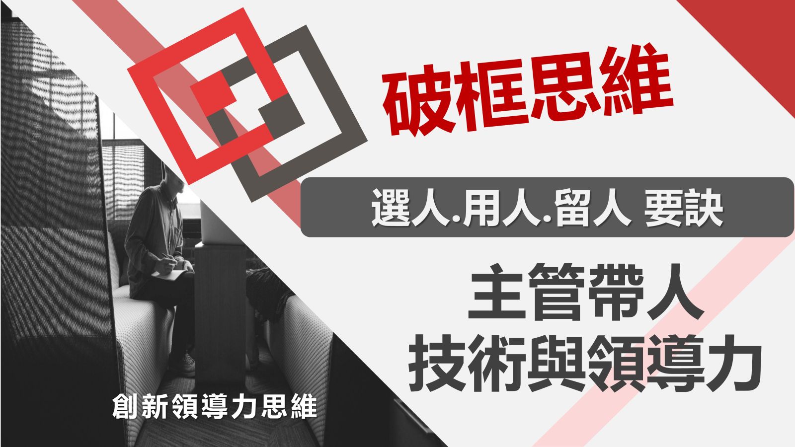 本次課程會引導學員,突破能力陷阱,運用破框思維,在面對各產業皆缺工的狀況下,快速的找到合適的人才,留住現有的優秀員工,帶領部屬們達成公司目標,提升績效。