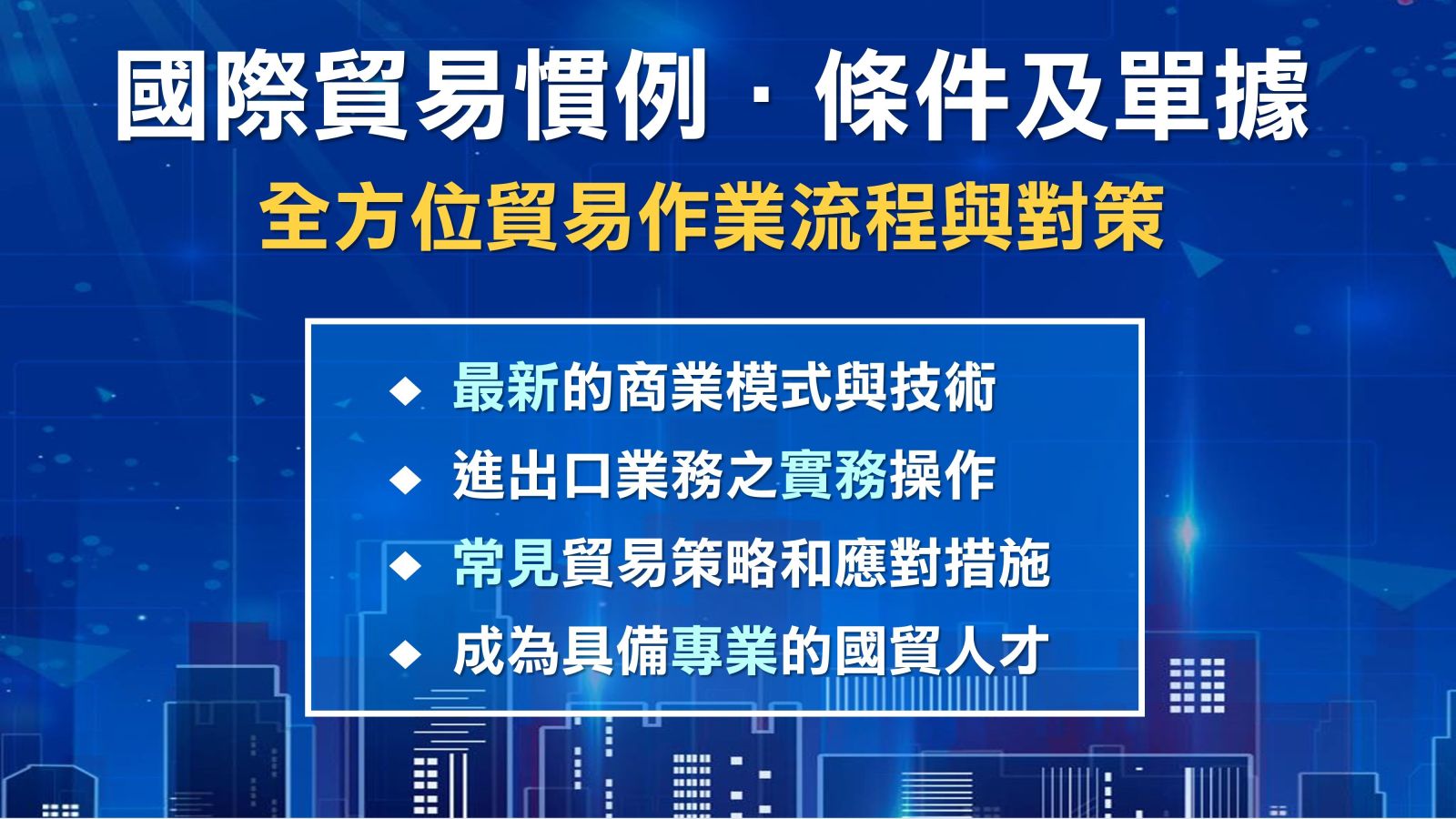 本課程著重進出口業務的實務操作,幫助學員發現問題並有效解決,同時識別和抓住商機,實現開源節流,培養學員成為具備專業能力的國際貿易人才。