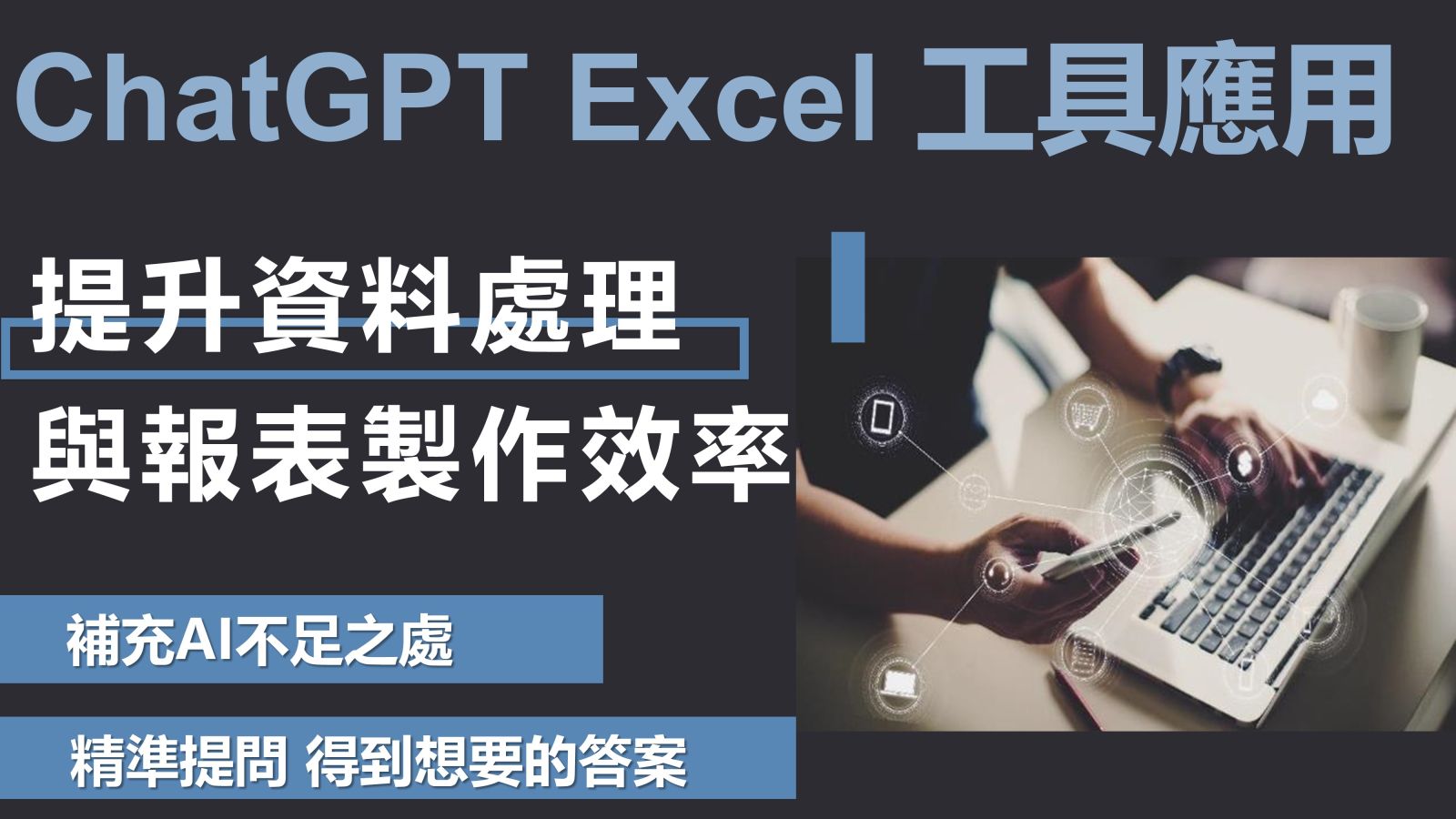 ※課程說明:協助財會同仁及公司其他部門人員熟悉ChatGPT基本用法,借助AI工具能夠有效快速學習,熟悉工作中最常用到的Excel指令函數。如何精準提問,得到想要的答案,課程視情況也會補充AI的不足之處。上課範例會用到會計報表,但都會是簡單容易理解的商業報表,例如存貨、應收帳款、應付帳款,若您非會計人員也適合!