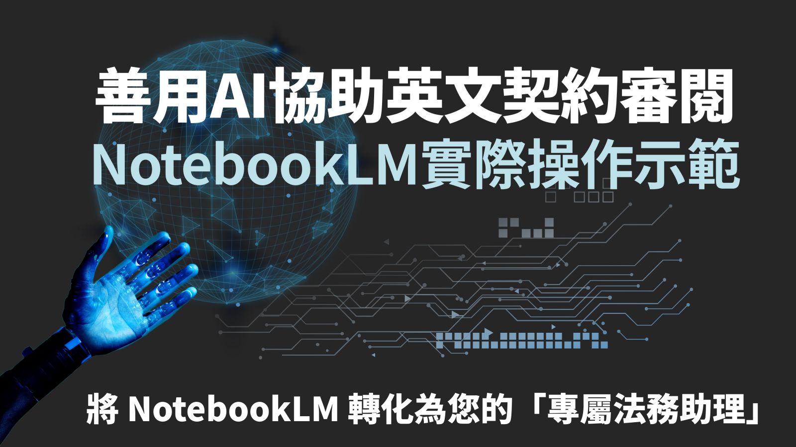●建立高效的「人機協作」工作流: 破除對 AI 的迷思,了解 NotebookLM 在契約審閱中的「能與不能」,將其無縫融入日常審閱標準作業流程(SOP)中。