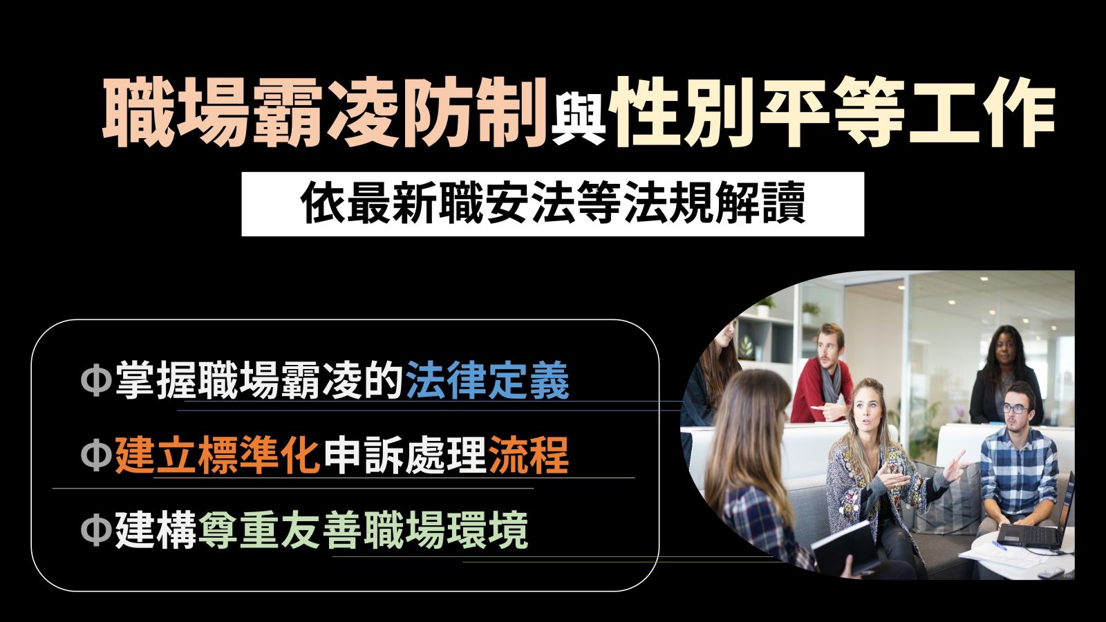 ◆前言:最新《職業安全衛生法》修法後首次以法律形式定義職場霸凌,本課程將解讀最新《職安法》有關職場霸凌規範,並根據《執行職務遭受不法侵害預防指引-第四版》內容協助企業建立完善的職場防護網,掌握職場霸凌的法律定義與界線,並建立標準化申訴處理流程,落實雇主法定的「預防義務」與「事後補救」,協助企業降低法律爭端風險,建構安全、尊重且高效的友善職場環境。