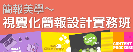 而一個成功的簡報,除了要有美的視覺在第一時間吸引目光外,更需要情境與內容並重;透過視覺溝通及資訊圖表化,再輔以簡報者以說故事的角色,將聽眾帶入情境中,成功達到簡報之目的。本課程老師將教導學員簡報製作的邏輯、簡報規劃的情境思維、並傳授如何將各項資料進行內容精煉,擷取重點訊息,完成資訊之視覺轉換及圖表化,最後搭配案例解析上台表達心法,讓您成為簡報達人。