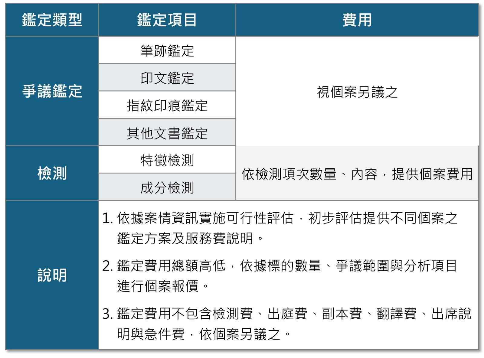為國內重要之專業鑑定機構,提供各司法 單位及企業各種專業技術鑑定及評估服務,更深受政府、司法、金融保險機構及律師、會計師等專業人士之倚信,秉持專業技術思 維和維護社會公平正義之科學鑑識專家。