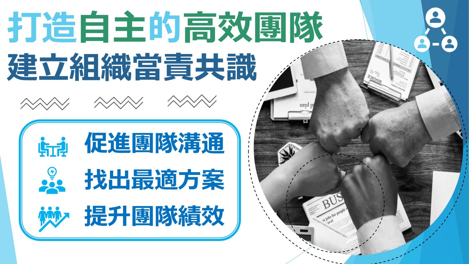 職場溝通力:跨部門溝通、簡報表達力、內部講師培訓、團隊建立(TeamBuilding)