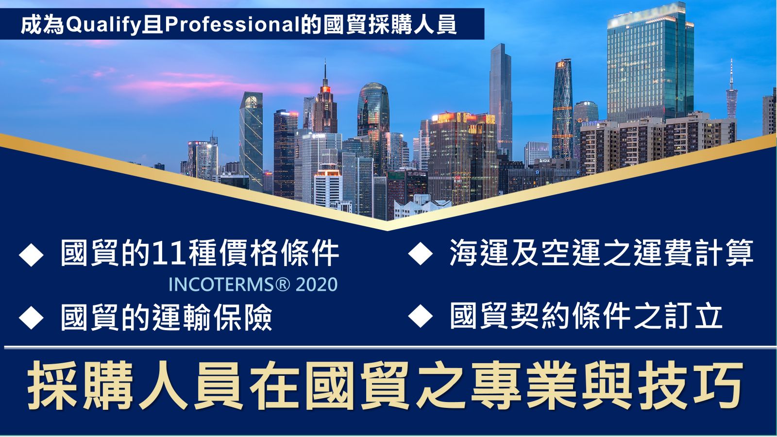 本課程引導您從「價格條件」、「運輸保險」、「海運運輸」、「航空運輸」、「三角貿易的換單」等,從重點提示到案例演練,由有實戰經驗的講師分享經歷,並且一步一步帶著您指導與解說,讓您理解「下訂單」整個國貿中專業術語的定義及海空運費才積與計算方式,化解盲點,不再擔心所報出的價格脫離實際,讓您勝券在握!