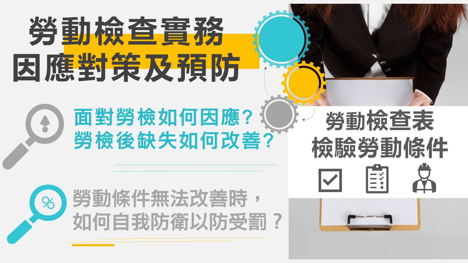 ●授予證明:講座期滿,缺席未達1/3,由本院頒給「勞動檢查之企業對策與預防實務 - 勞動事件法之因應措施」結業證明。
