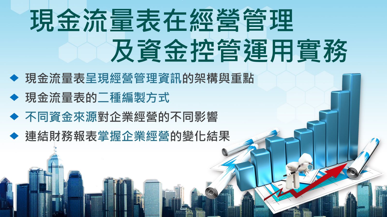 本課程教導學員掌握現金流量表的架構、內容,從與營運活動間的互動關聯性,了解企業經營管理及資金控管的關鍵,達到企業在經營管理的實質掌握。
