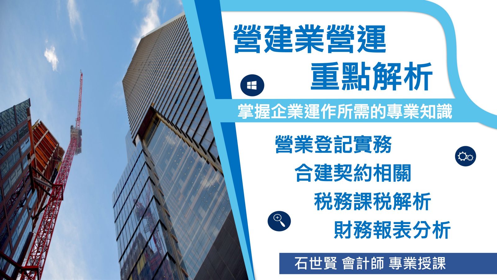 營建業相關會計及報稅實務繁多,為協助營建業相關企業經營者及一般作業人員了解並建立營建業整體會計及報稅之正確觀念、有利於實務工作正常運作。