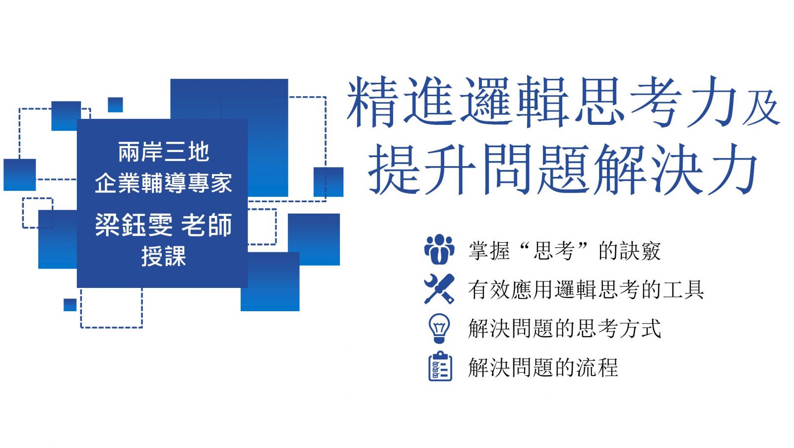 老師目前是很多公司的輔導顧問,多年來身兼橫跨兩岸三地和各個產業的顧問,身為輔導顧問,經常要去協助解決表面問題,但卻能找出深層或複雜的關鍵問題!