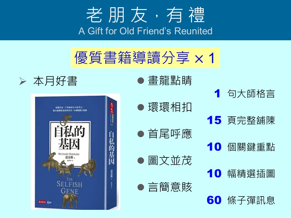 2024年11/28課後分享-「 自私的基因」,機會只有一次,錯過可惜!
