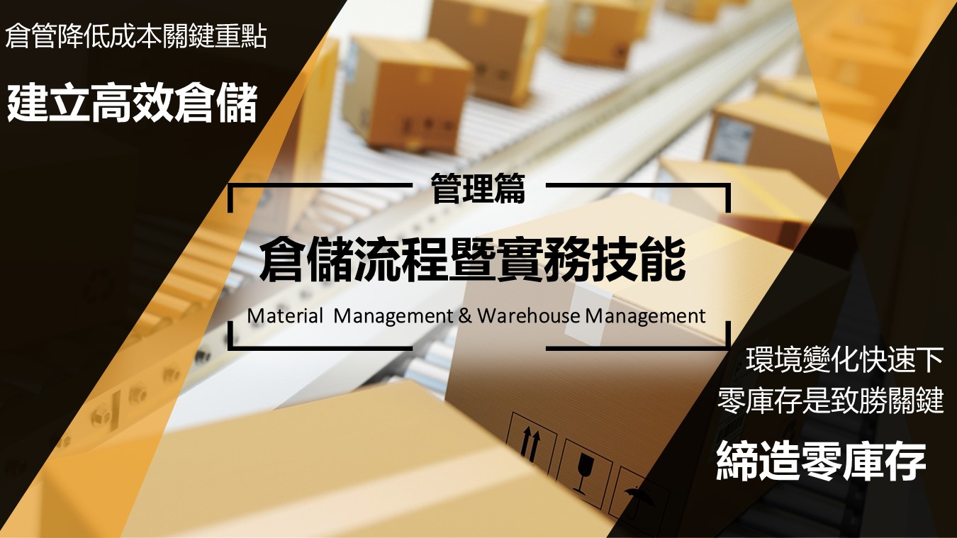 在環境變化快速之今日,締造零庫存實在困難,故倉儲管理更顯重要,倉管人員該如何協助公司建立高效倉儲,降低成本支出,成為重要之任務。本課程兼具理論基礎、實務研究,徹底剖析倉庫各項工作環節,從基本觀念引導至實務倉庫操作技術,分析並解讀倉庫資訊,協助參訓學員應用於實務技巧上。