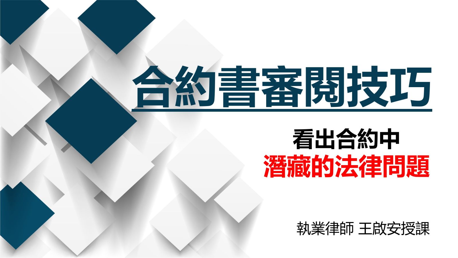 本講座應學員需求特邀執業律師-王啟安老師規劃,名額有限敬請把握!