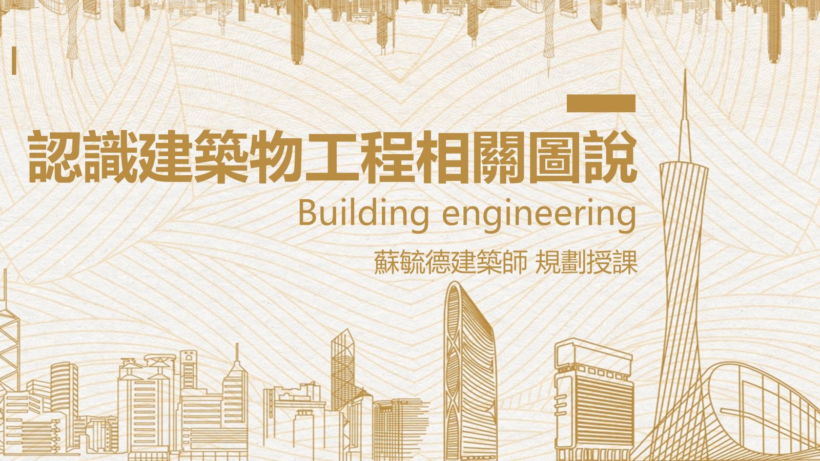 認識建築物工程之各階段(規劃設計、設計及申請建造執照、結構、消防安全設備、電力、給排水、空調設備)相關圖說內容,以利掌控建築物之規劃、設計、監造、施工、使用及室內裝修等各個階段之營建情形。
