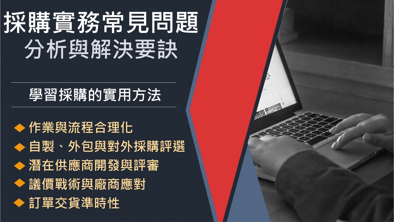 2.學習採購實務上有效作法,包括:自製與外包決策、潛在廠商開發評估與管理方式、採購價格分析、議價談判、降價方法、進貨交期跟催、採購績效提升方法、採購異常管理等。