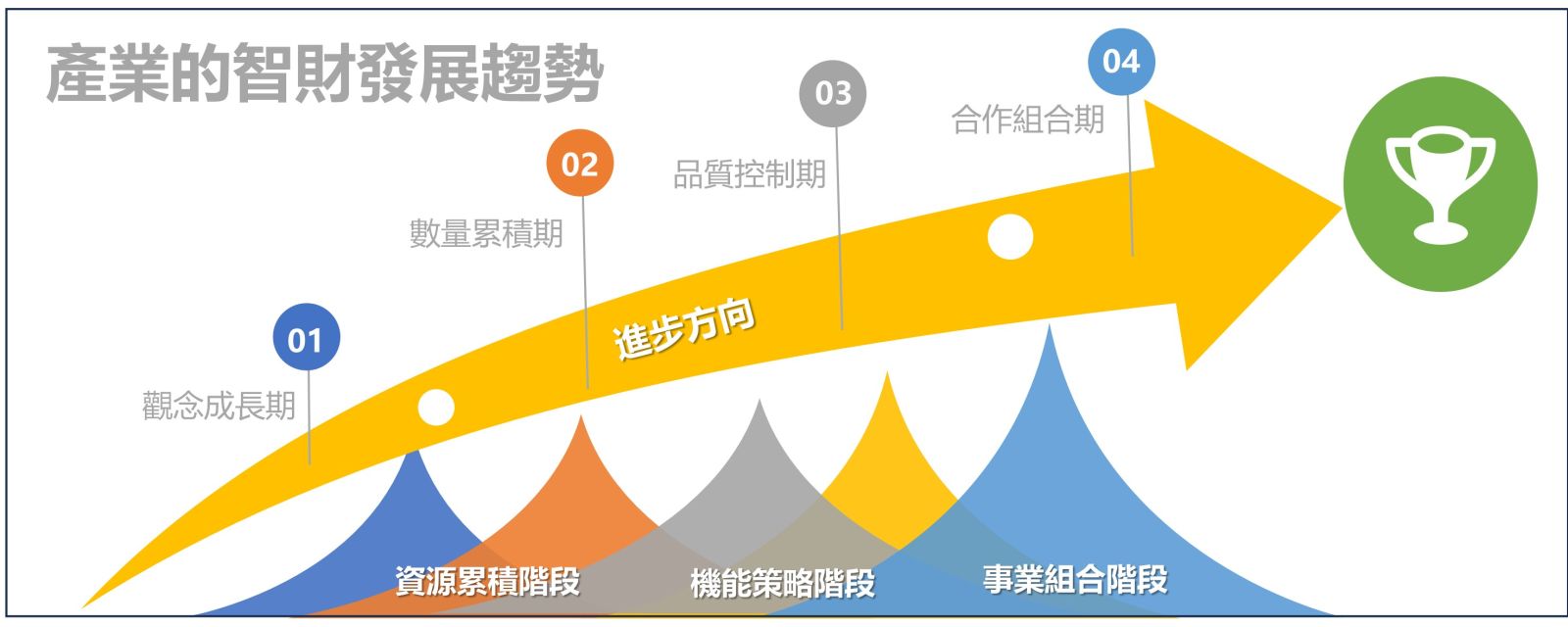 - 初級程度:以保護為主,具備基本智慧財產權法律觀念。